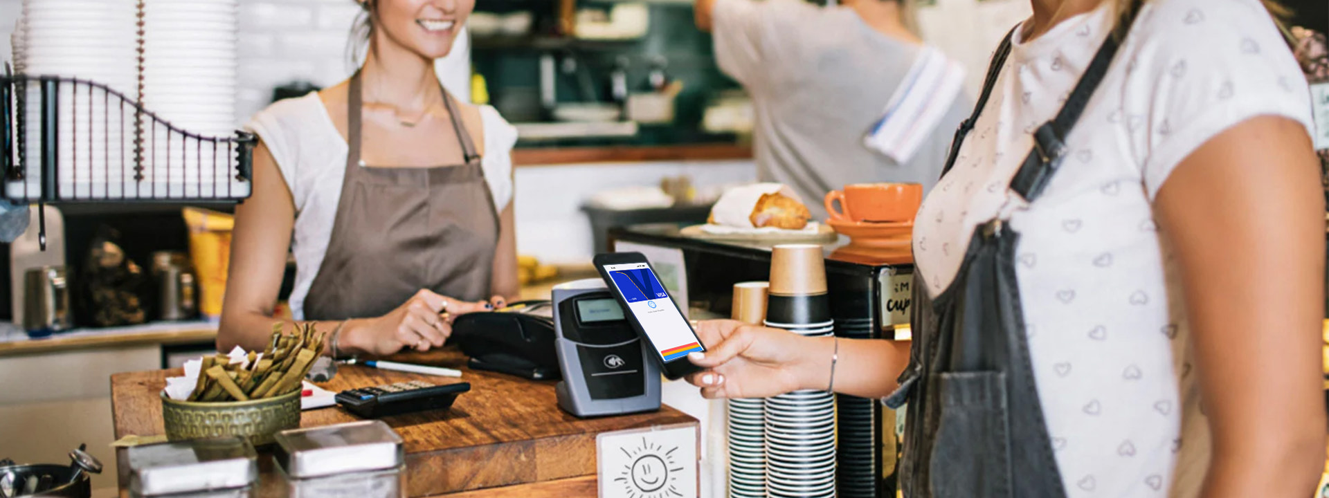 Du betaler ved å holde mobilen, smartklokken eller kortet ditt mot terminalen og tæpper. Se hvordan det fungerer her.