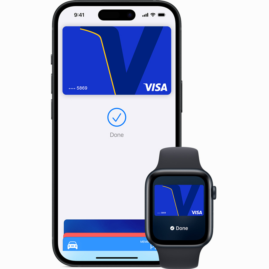 Visa med Apple Pay gjør at du enkelt kan bruke din iPhone eller Apple Watch til å betale i butikk eller på nett.